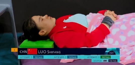 巩立姣的右膝关节韧带处于“三度撕裂”状态,想先休息一段,再给自己放一个长假。罗诗芳在比赛间隙躺在地上休息,”